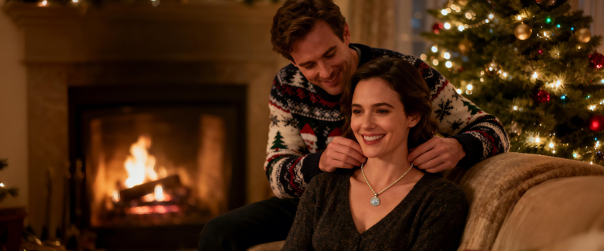 A necklace softly placed, a smile that lingers—crafted to hold the warmth of being chosen and cherished