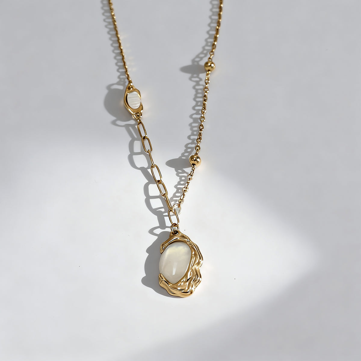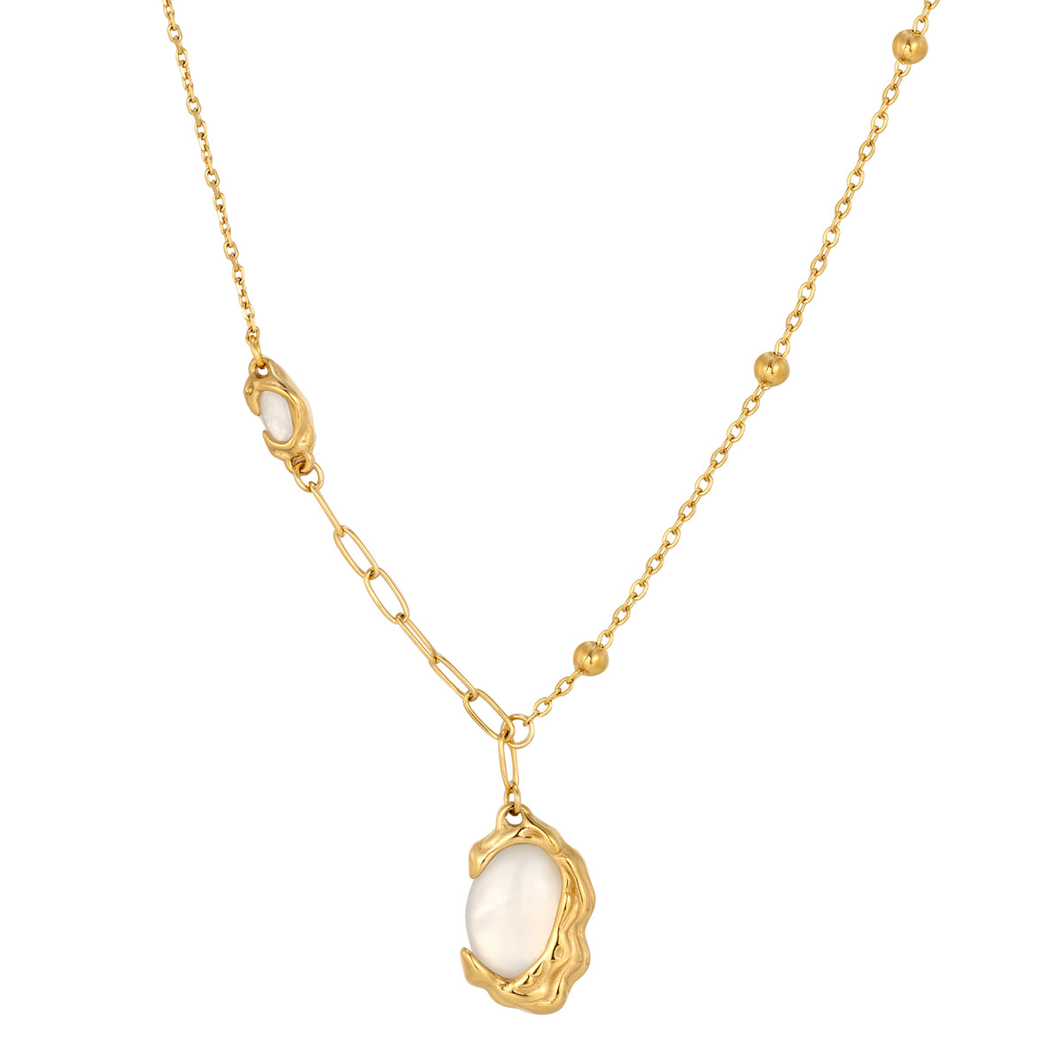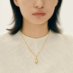 Role: Artistic signature piece / High-end layering essential. Dimensions: Fluid organic pendant on a refined link-and-bead chain. Weight: 5.5g — Expertly balanced for a premium, substantial feel without fatigue. Chain: High-polish finish — Engineered to be snag-free against silk and delicate fabrics. Fit: 18" length (45cm) — The professional standard for perfect neckline placement.