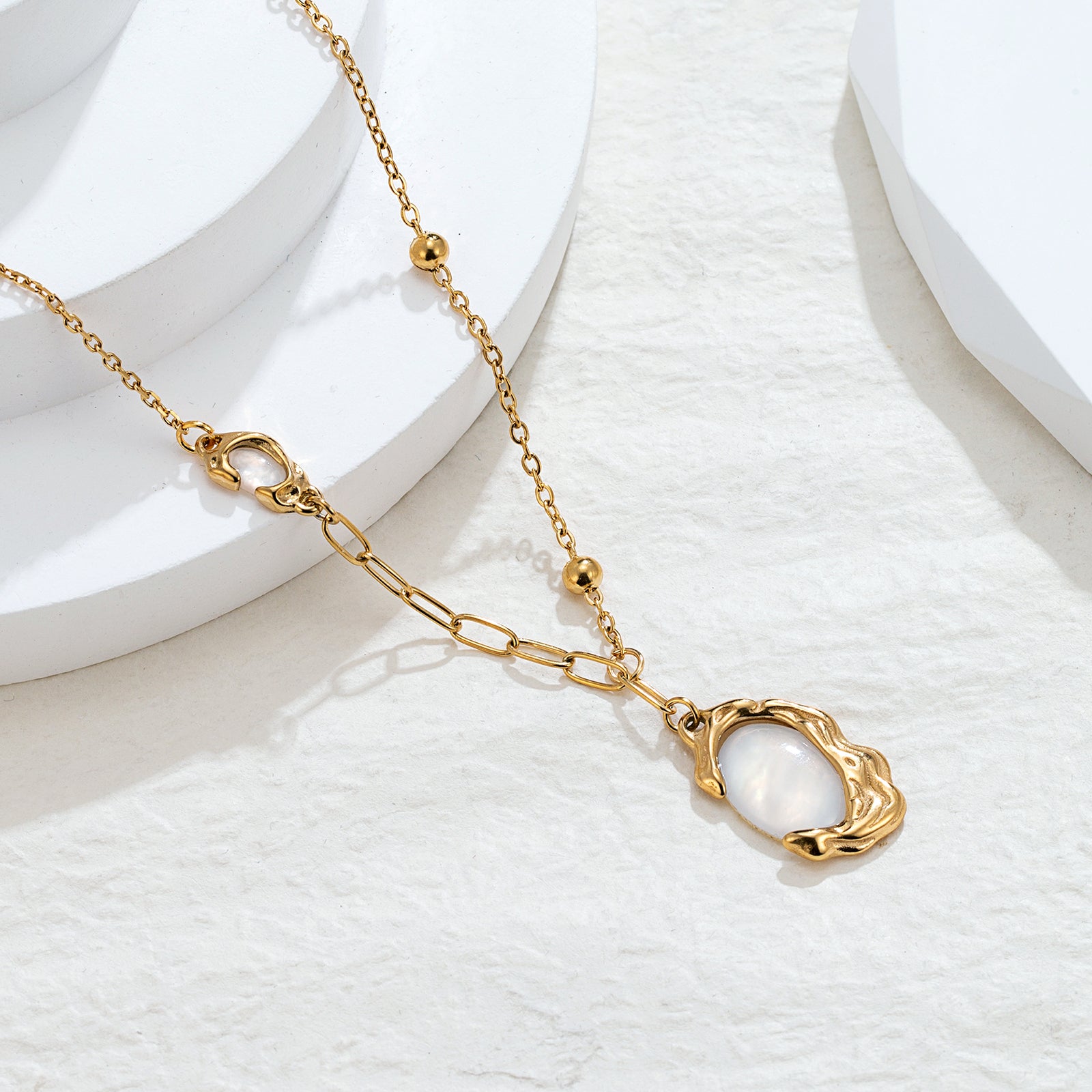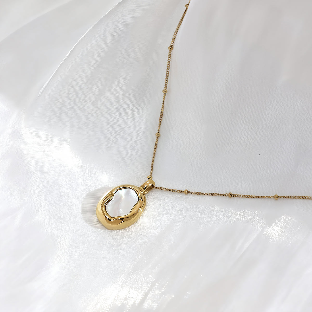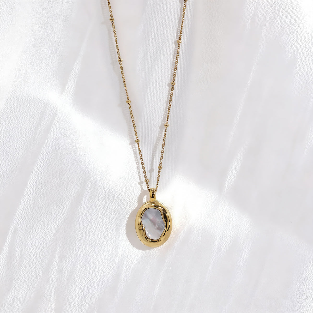 18K Gold Plating: Deep, honeyed luster over a durable medical-grade base. Natural Mother-of-Pearl: Sustainably sourced, hand-polished shell for a unique, iridescent glow. The Anti-Fade Guarantee: Guaranteed waterproof and tarnish-free. If it fades within one year, we provide a free replacement, no questions asked.