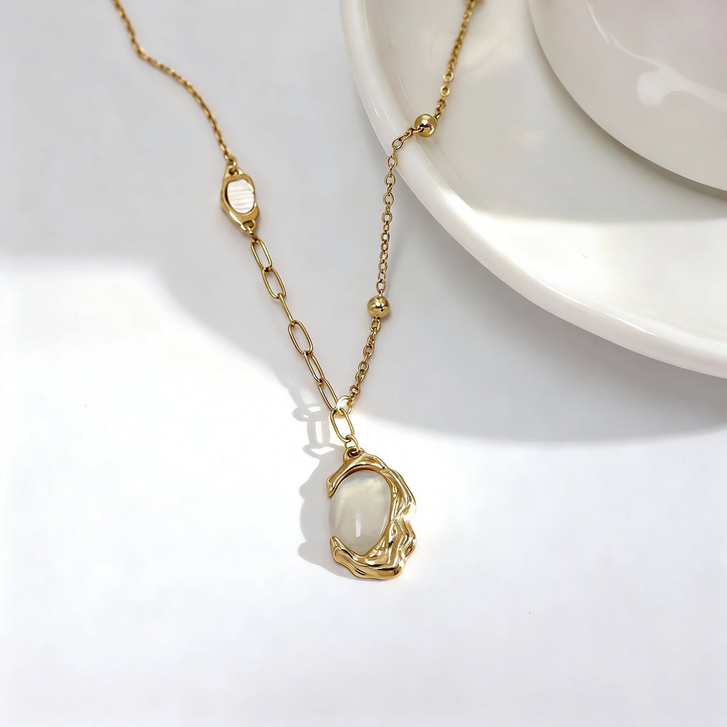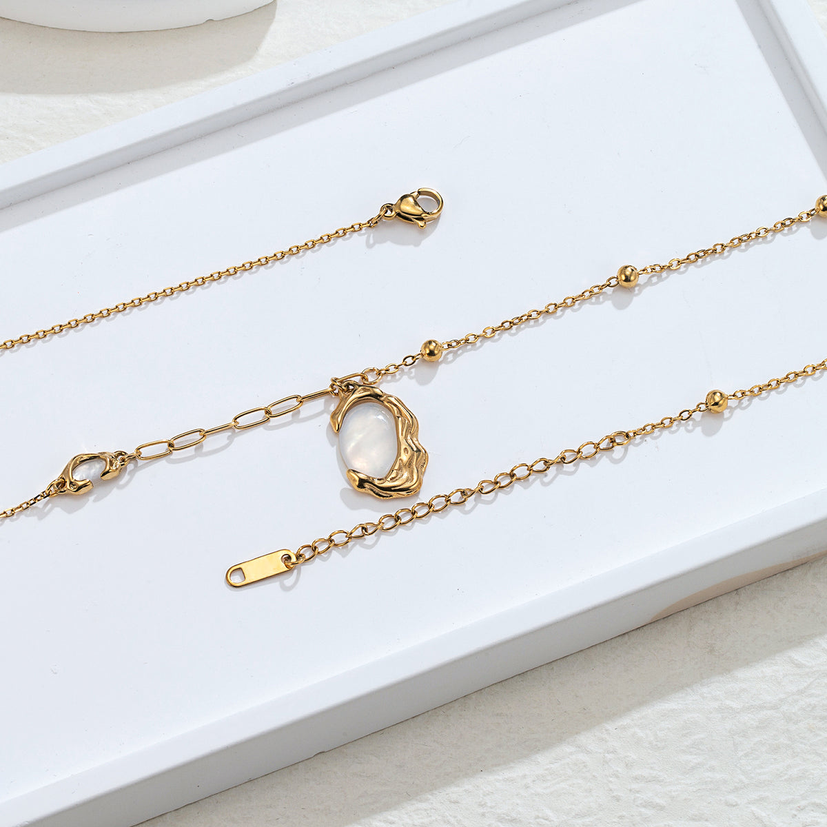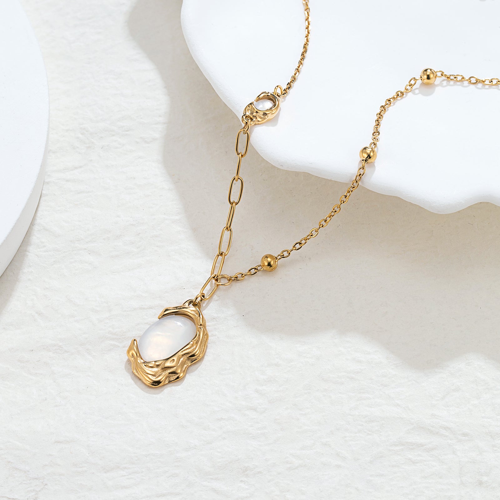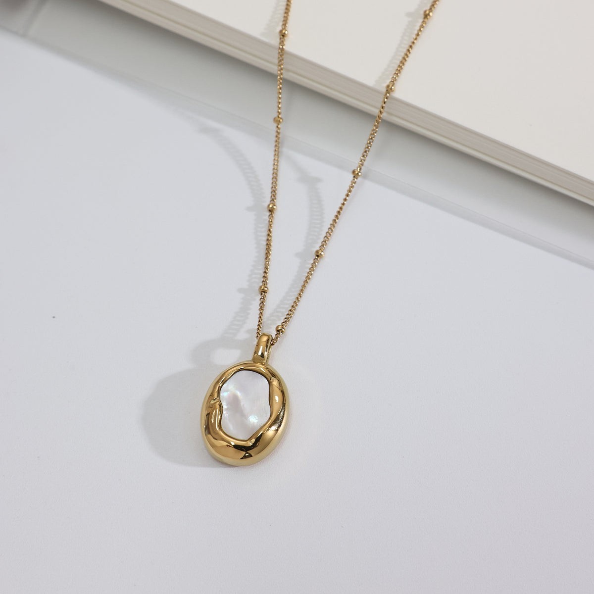 18K Gold Plating: Deep, honeyed luster over a durable medical-grade base. Natural Mother-of-Pearl: Sustainably sourced, hand-polished shell for a unique, iridescent glow. The Anti-Fade Guarantee: Guaranteed waterproof and tarnish-free. If it fades within one year, we provide a free replacement, no questions asked.