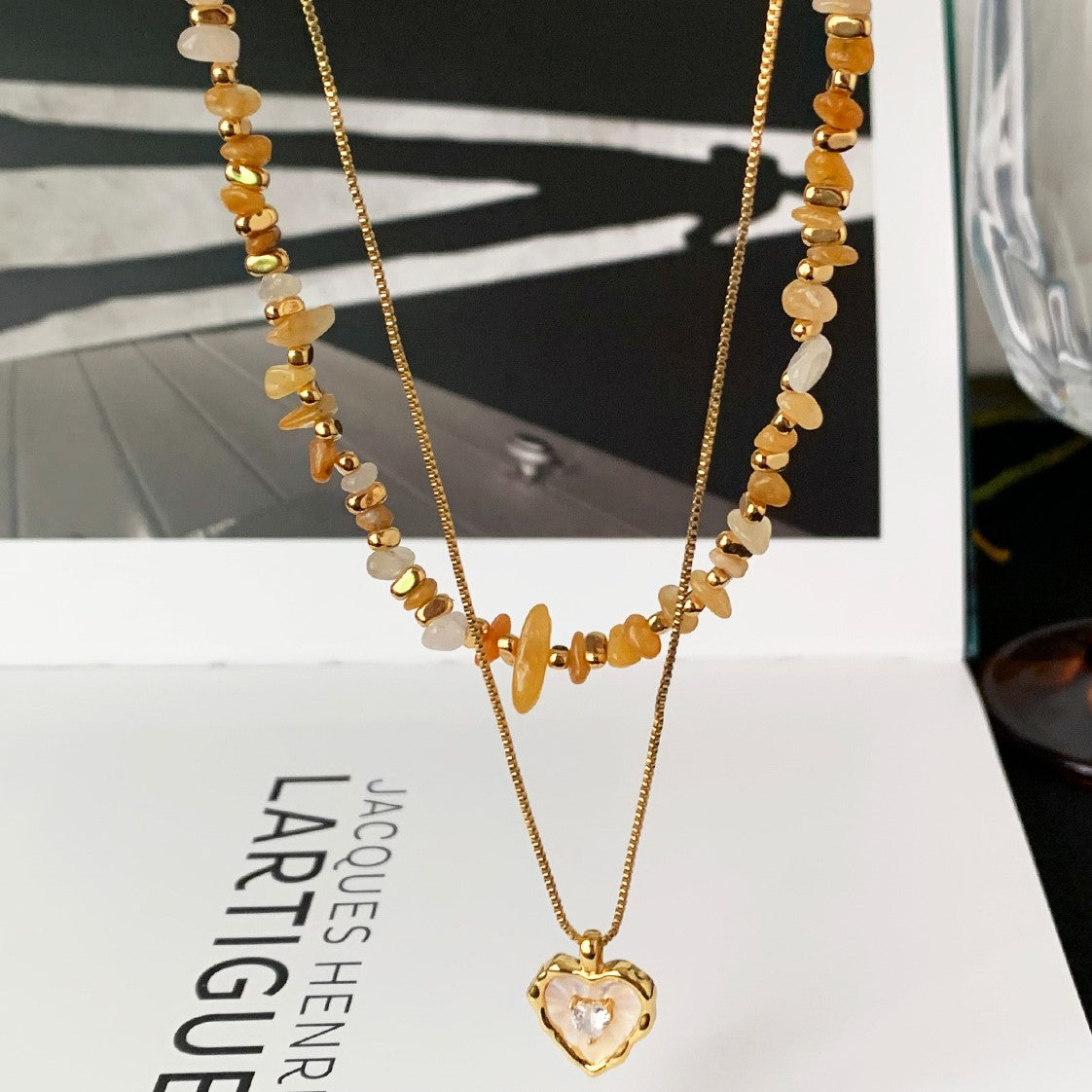 The Amber Drift | Natural Stone Mosaic Necklace.