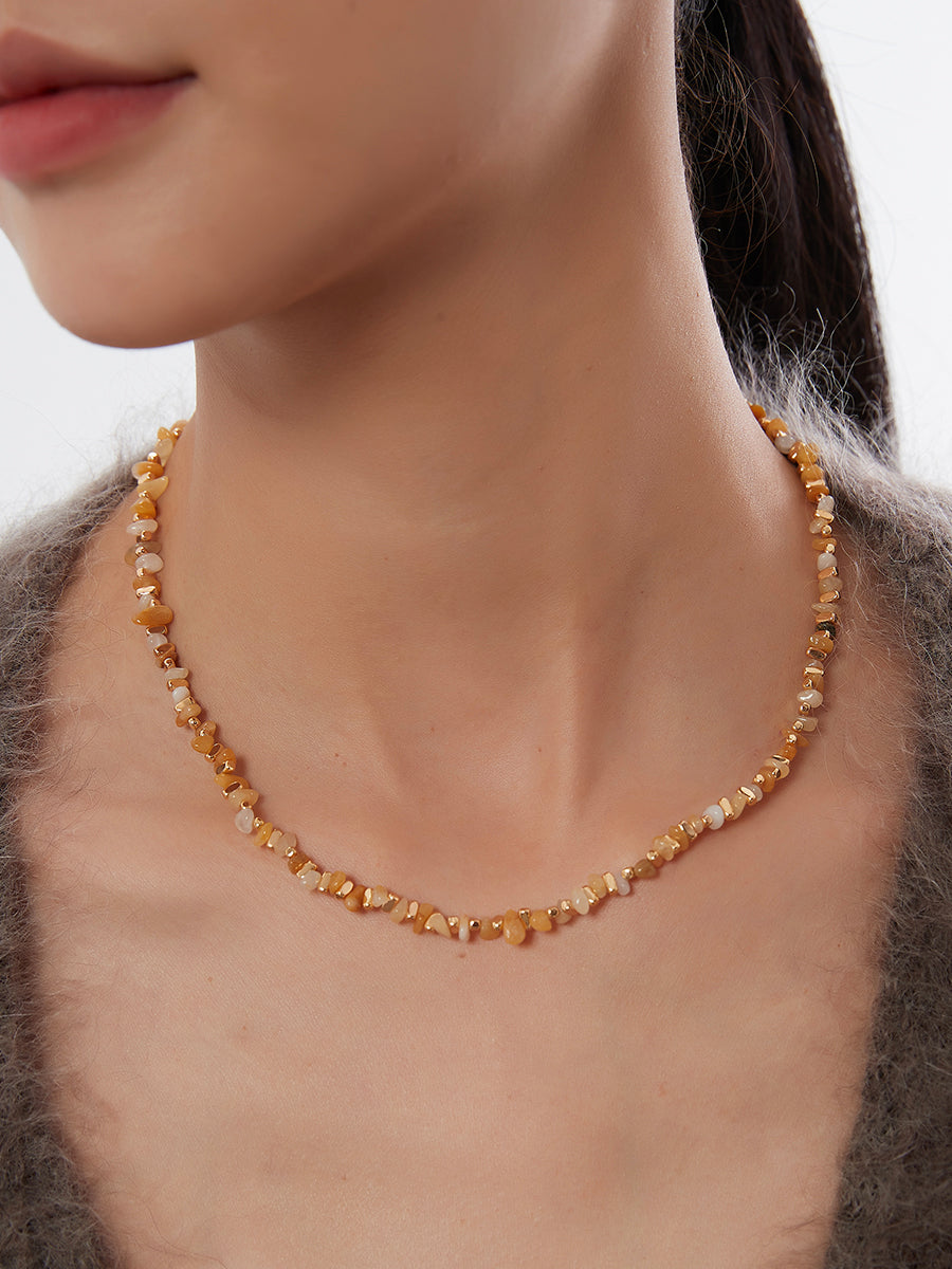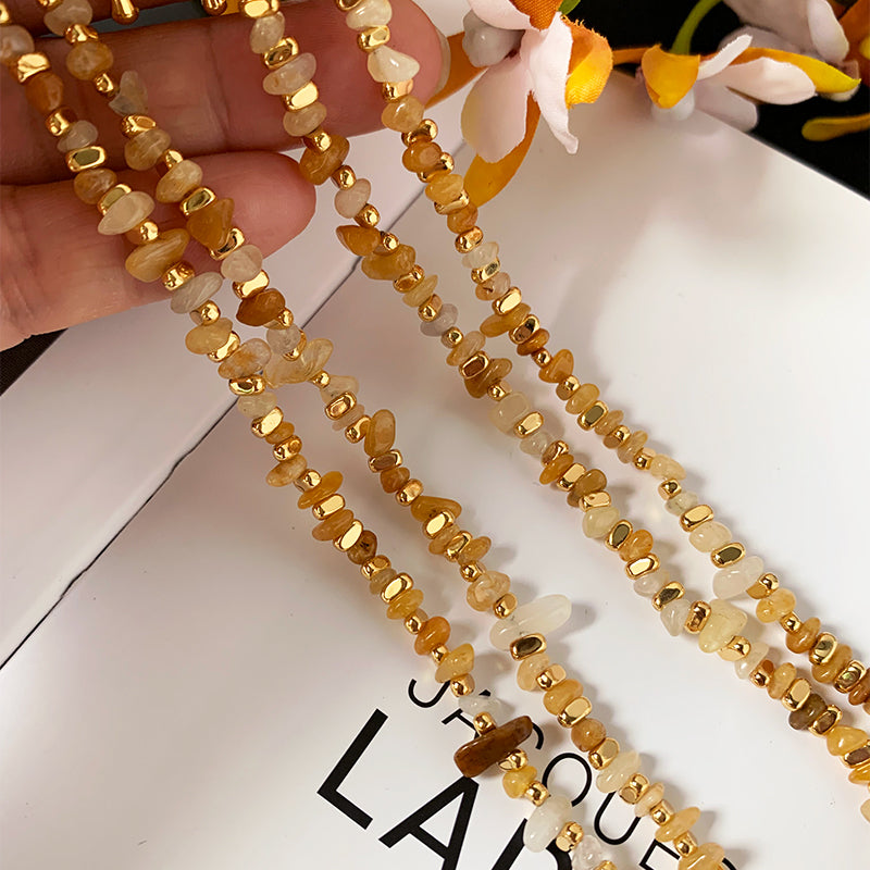 The Amber Drift | Natural Stone Mosaic Necklace. - Gold / One Size