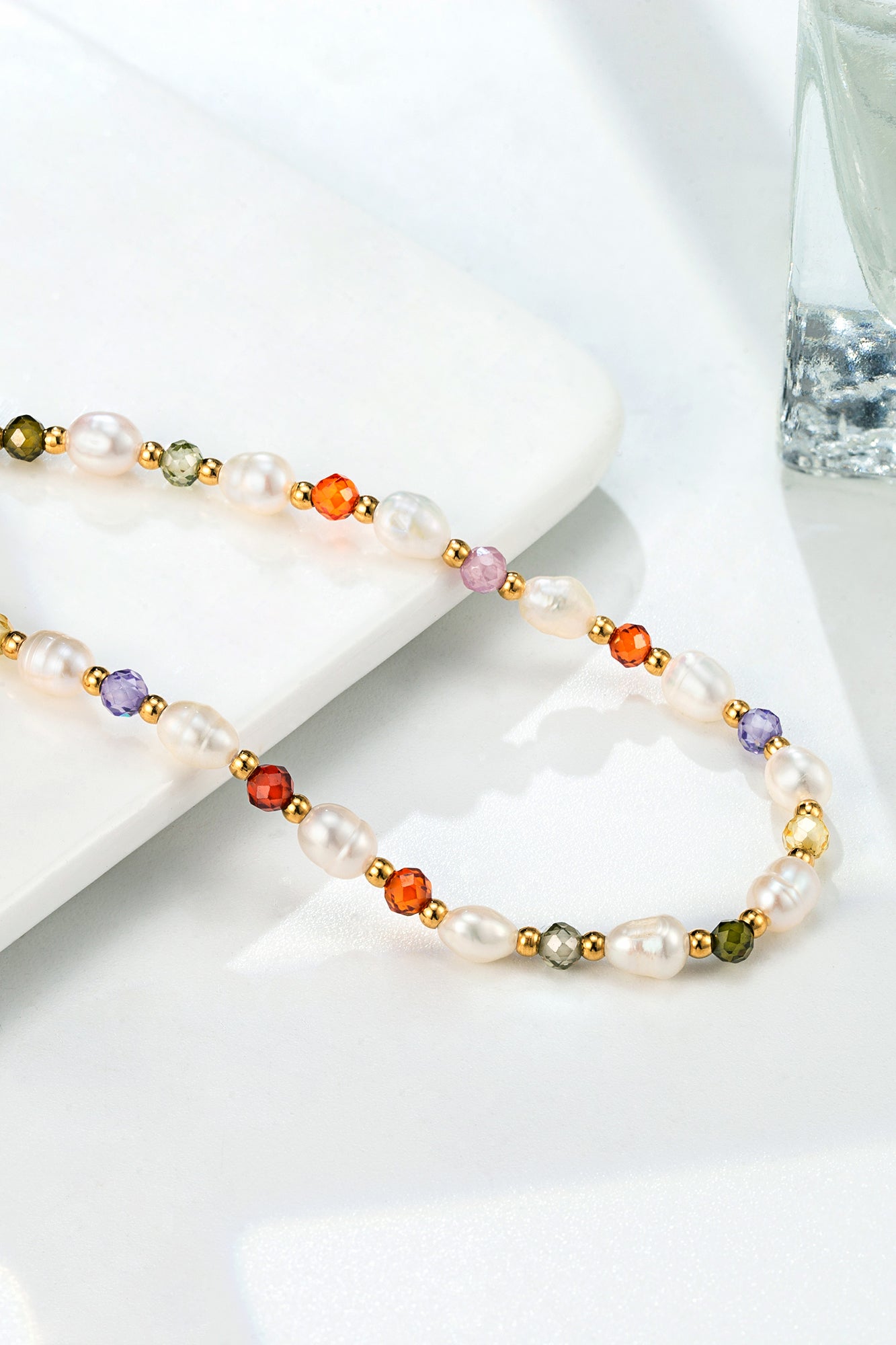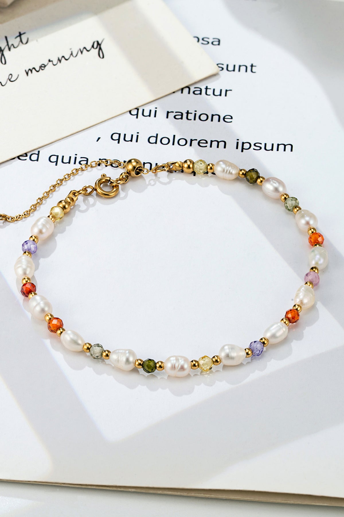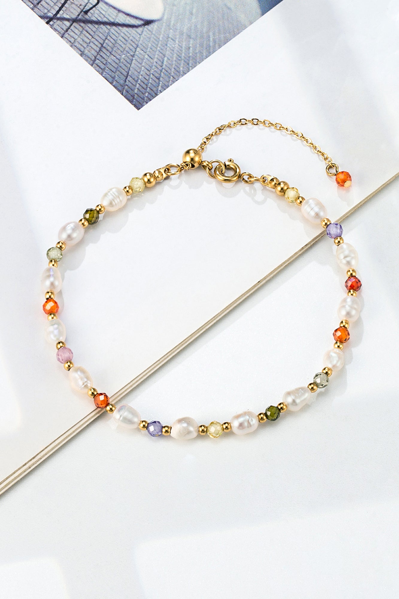 SizeStyle: Beaded Bracelet Beads: Freshwater Pearls + Faceted Crystal Beads Pearl Size: 4–6mm Finish Color: 18K Gold Tone Closure: Lobster Clasp + Adjustable Extender Weight: Approx. 5g Made: Handmade (size may vary slightly) SizeLength: