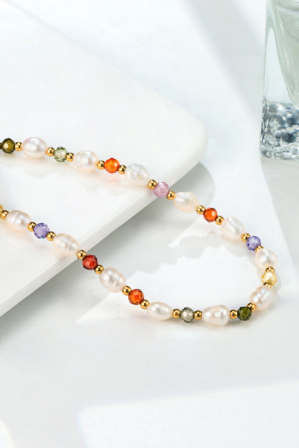 Freshwater pearls bring a calm, natural glow, while tiny crystal beads catch light like small reminders that you’re still here, still moving, still trying.
