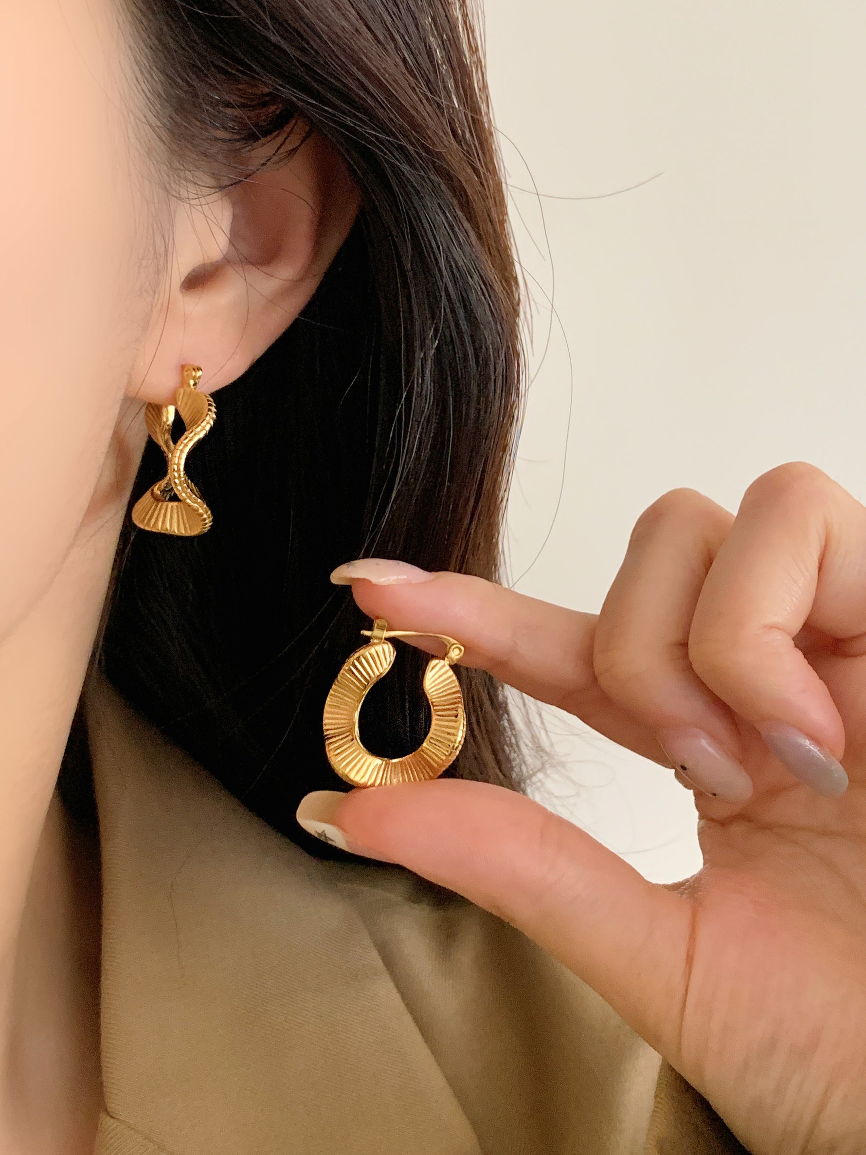 These sculptural wave hoop earrings are designed for moments when you want to feel grounded—without being loud about it. The flowing, twisted form reflects resilience: never rigid, never broken, just moving forward in its own way.