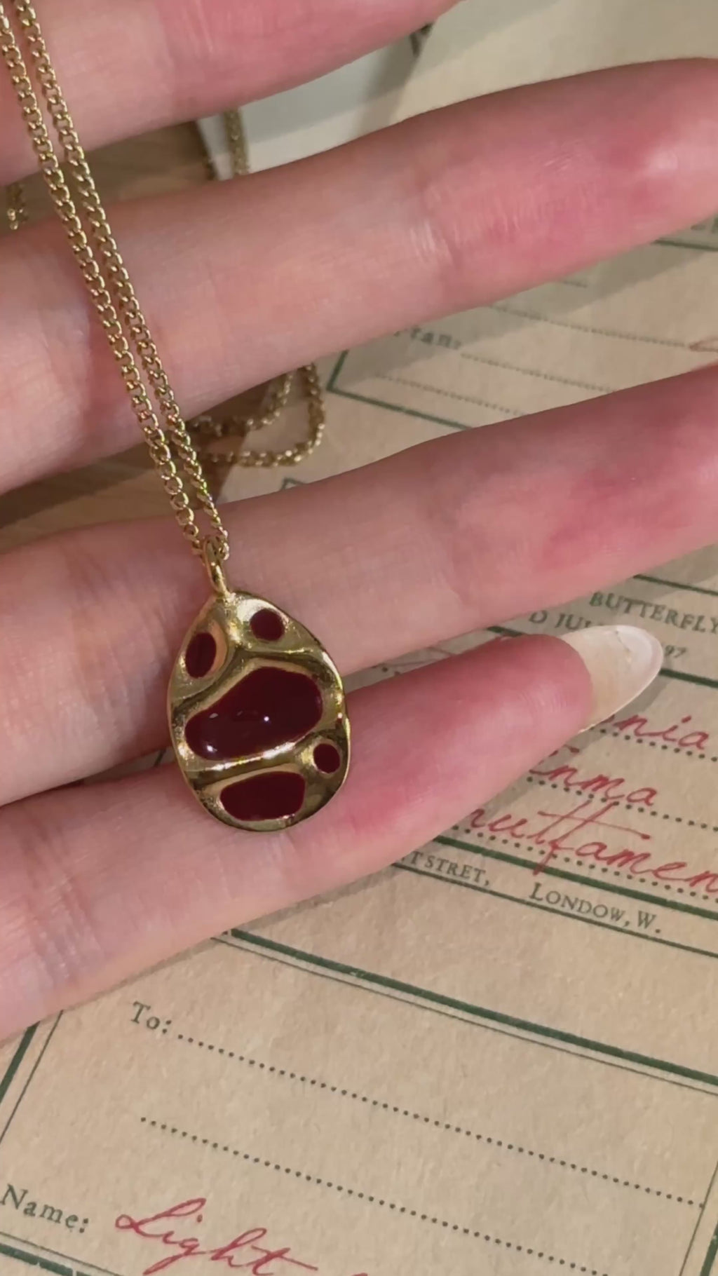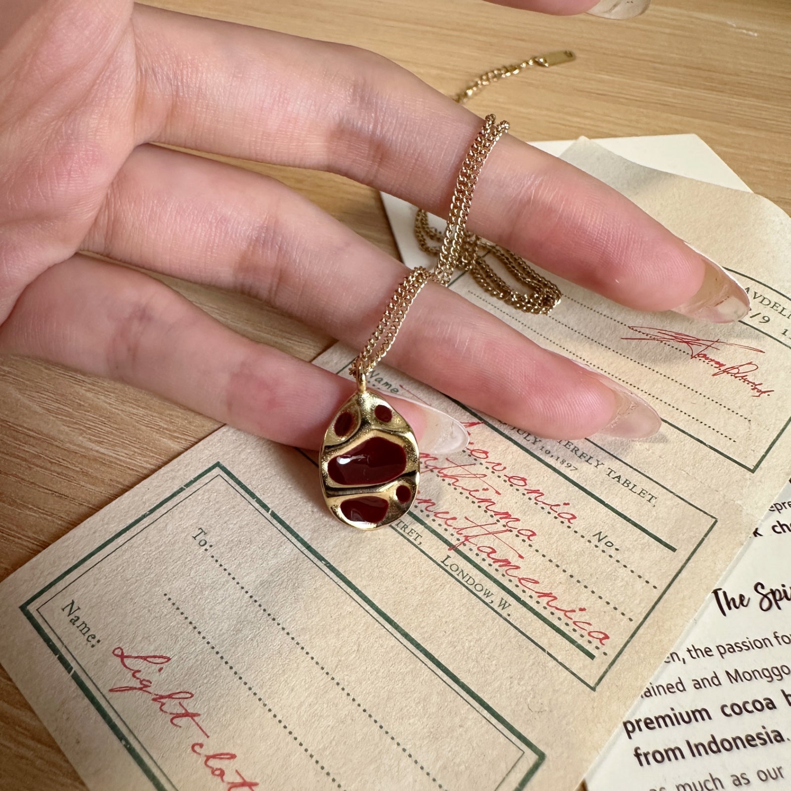 Artisanal Crimson Enamel Pendant Necklace - Gold / One Size