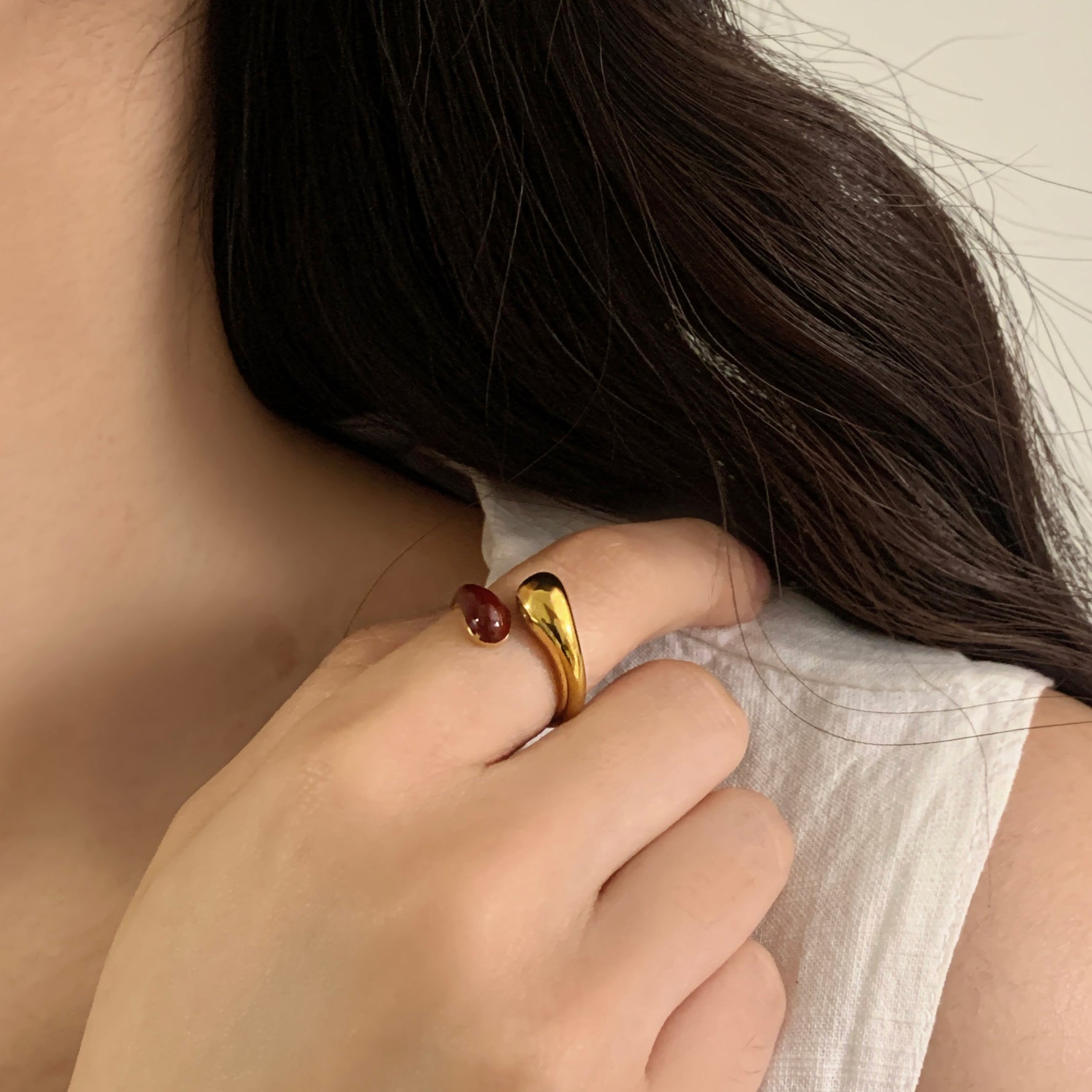 The organic, molten silhouette wraps comfortably around the finger, offering an artistic twist on the classic gold band. With its substantial weight and adjustable open design, it is as satisfying to wear as it is to look at.