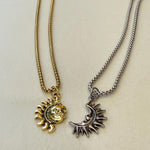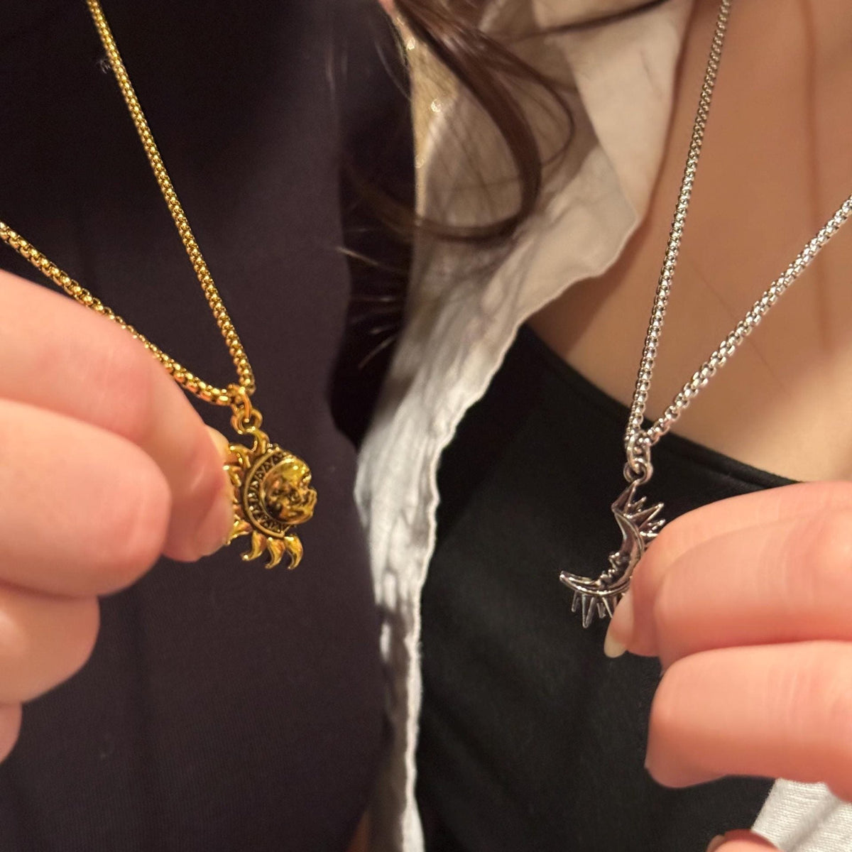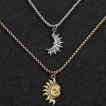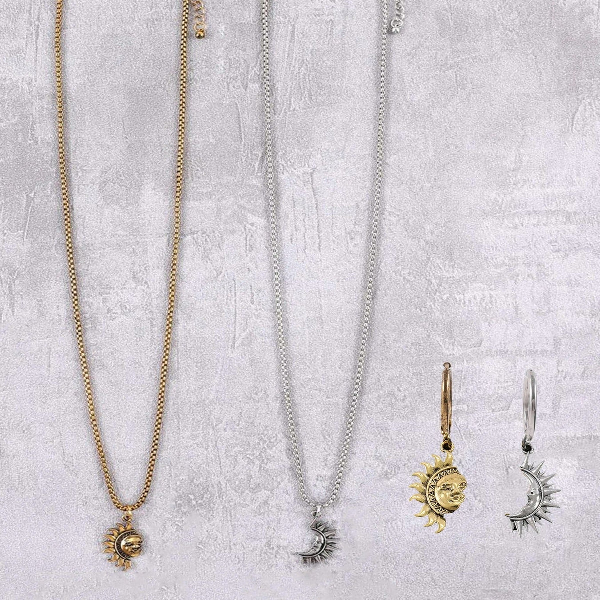 Waterproof Sun and Moon Asymmetrical Necklace|Earrings - Necklaces-Sun