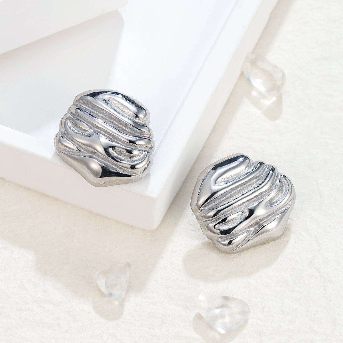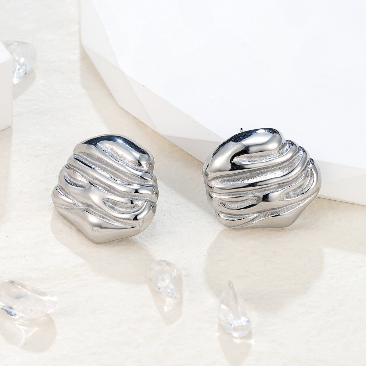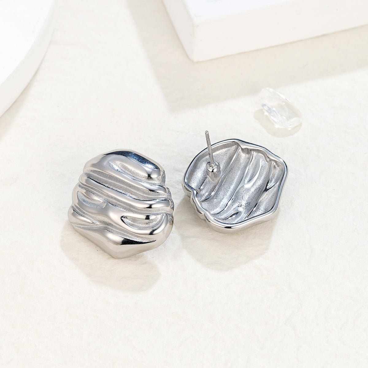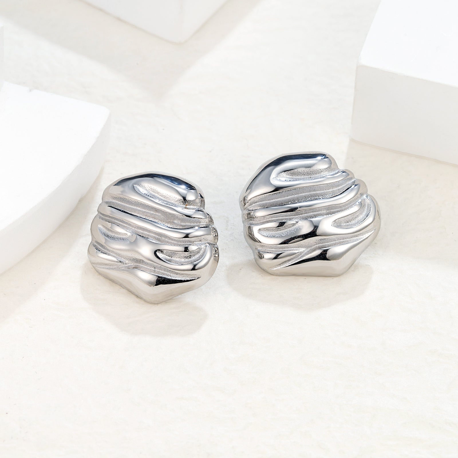 Finish: Organic, textured surface Style: Stud earrings Weight: Approx. 15.8g / pair Size: 2.4 × 2.2 cm Comfort: Hypoallergenic & waterproof Wear Feel: Noticeable but calming — like a small grounding stone