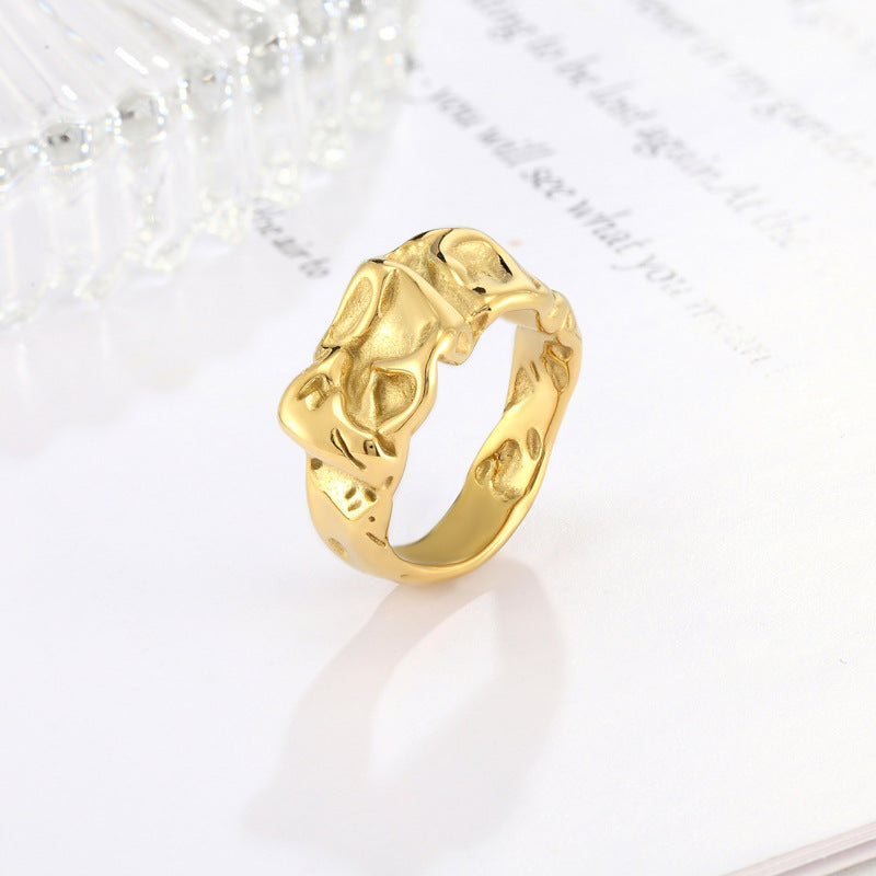 Waterproof 18k Gold Molten Ring - Irregular Folded Texture Band