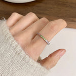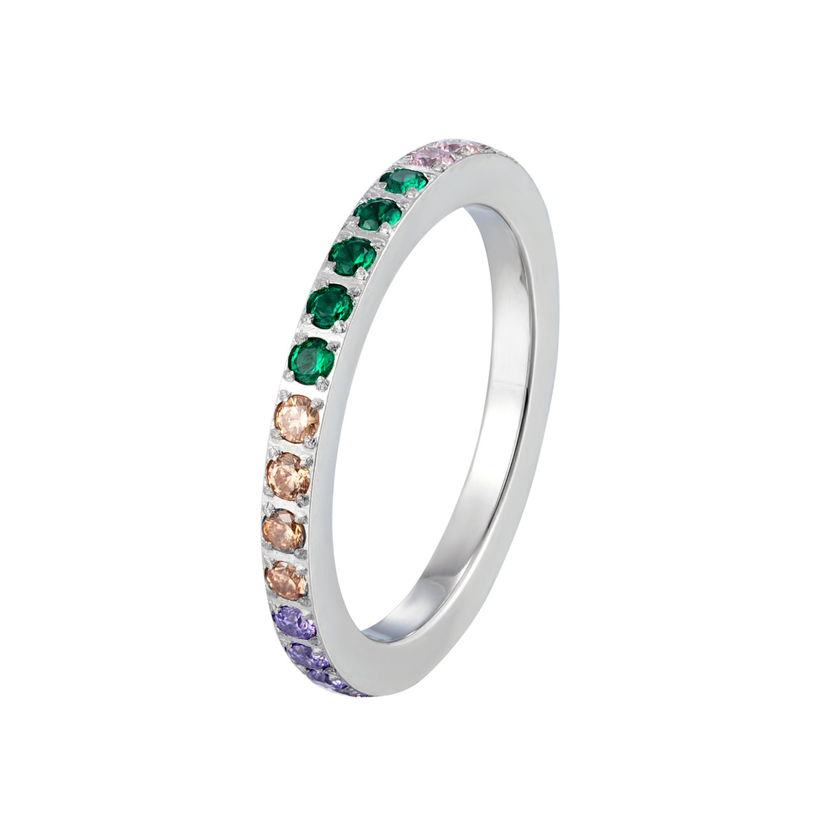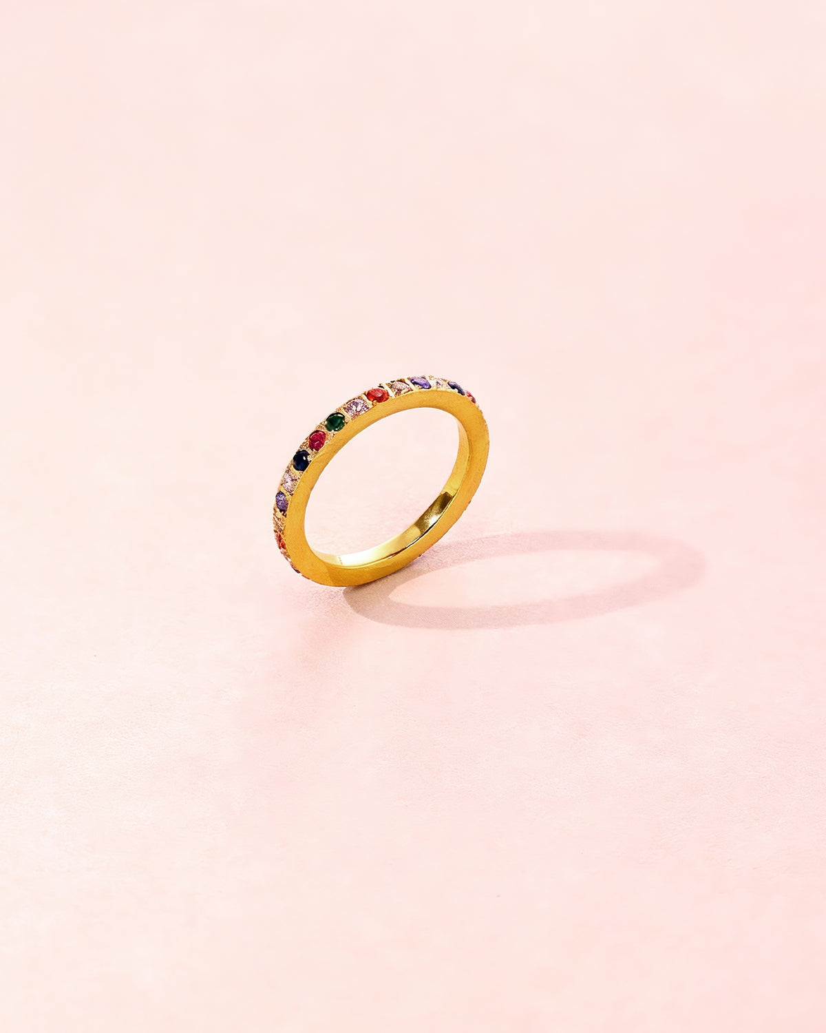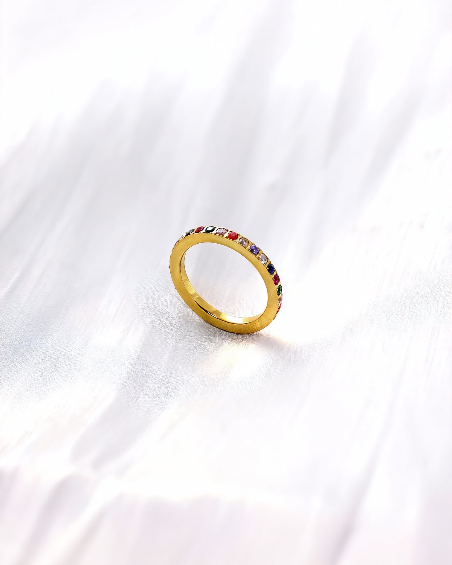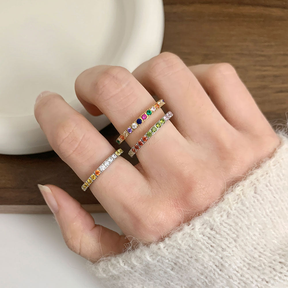 A slim eternity-style band set with micro multicolor stones, designed for effortless everyday wear.