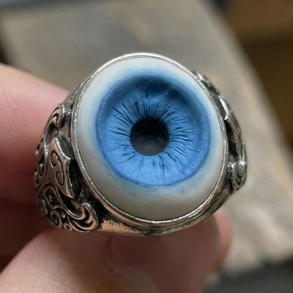 Making room for good fortune. The hyper-realistic gaze isn't just a bold design choice. It is a symbol of clarity and protection. By catching and neutralizing the bad luck, it clears the path for good fortune to flow in. Crafted with an adjustable open band, it adapts perfectly to your finger, sitting there like a watchful, unblinking guardian. It is a daily reminder that your energy is protected.